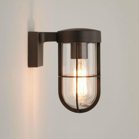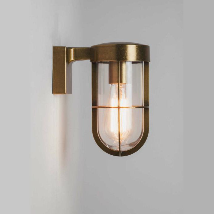 Exterior wall light available in antique brass, polished nickel and bronze with clear glass
