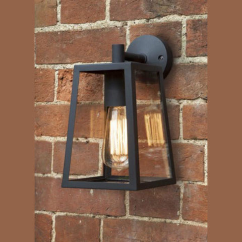 An extremely popular exterior wall light that looks equally good in a porch or any outdoor wall that needs lighting. Box shaped with sloping sides and large glass panels, the Calvi is an ideal choice for both traditional and contemporary homes. One of our decorative filament bulbs will finish the look.