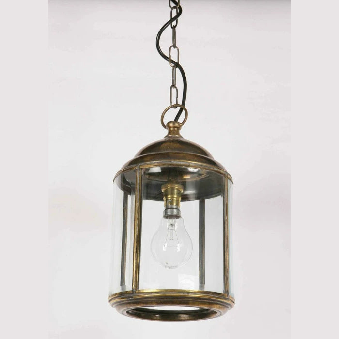 One of our most popular pendants, the Wentworth is hand-made in the UK in solid brass with a light antique finish. Simple in design with an elegant cylindrical shape and large glass panels this lantern will compliment and suit most settings. The finish will mellow with age and requires no cleaning or maintenance to maintain its appearance.