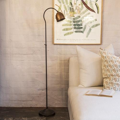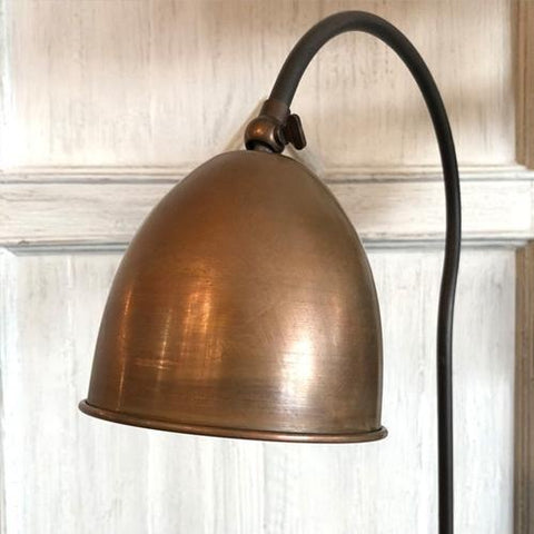 One of our most popular fittings, this stylish height adjustable floor lamp has a dark brown patina and a burnished copper shade. Also available in lead grey (see - Jacob)